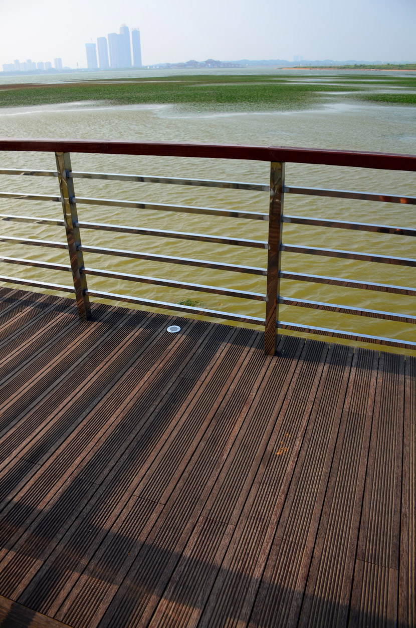 松雅湖國(guó)家濕地公園位于長(zhǎng)沙星沙,是集防洪調(diào)蓄、城市飲水、改善城市生態(tài)環(huán)境、完善城市功能配套布局、提升城市生活品位于一體的綜合性工程。 松雅湖生態(tài)公園總占地面積489.62公頃,合7 344.3畝。位于長(zhǎng)沙縣北部,北至撈刀河,南至濱湖路,東至東六線(北段)和東八線(南段),西至松雅河,通過澳大利亞GHD公司的規(guī)劃設(shè)計(jì),擬以松雅湖為核心,建成一個(gè)以湖光山色、自然生態(tài)為基礎(chǔ)的,集休閑、旅游、娛樂、健身、水上活動(dòng)等功能于一體的綜合性公園。 松雅湖濕地公園大面積使用桃花江竹材科技生產(chǎn)的戶外高炭防腐環(huán)保竹材。