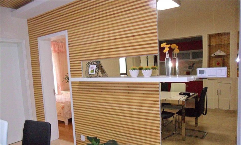 竹材墻體隔斷是利用竹板本身優(yōu)越的物理性能而組成的新型竹材應(yīng)用。這種隔斷材料具有穩(wěn)固性強(qiáng)、隔音、保溫等優(yōu)良性能。該隔斷竹制材料品種繁多、風(fēng)格各異,可以隨意安裝及拆卸,能與各種樣式的玻璃、百葉窗及其它配件進(jìn)行任意組裝,并能和裝飾布、PVC以及三聚氰酰胺板進(jìn)行多種顏色的組合。上述特點(diǎn)使它廣泛地應(yīng)用在寫字間、辦公樓等場(chǎng)所。目前,桃花江實(shí)業(yè)有限公司力致于生產(chǎn)