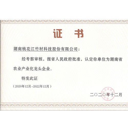 桃花江竹材多次榮獲“湖南省農(nóng)業(yè)產(chǎn)業(yè)化龍頭企業(yè)”稱號